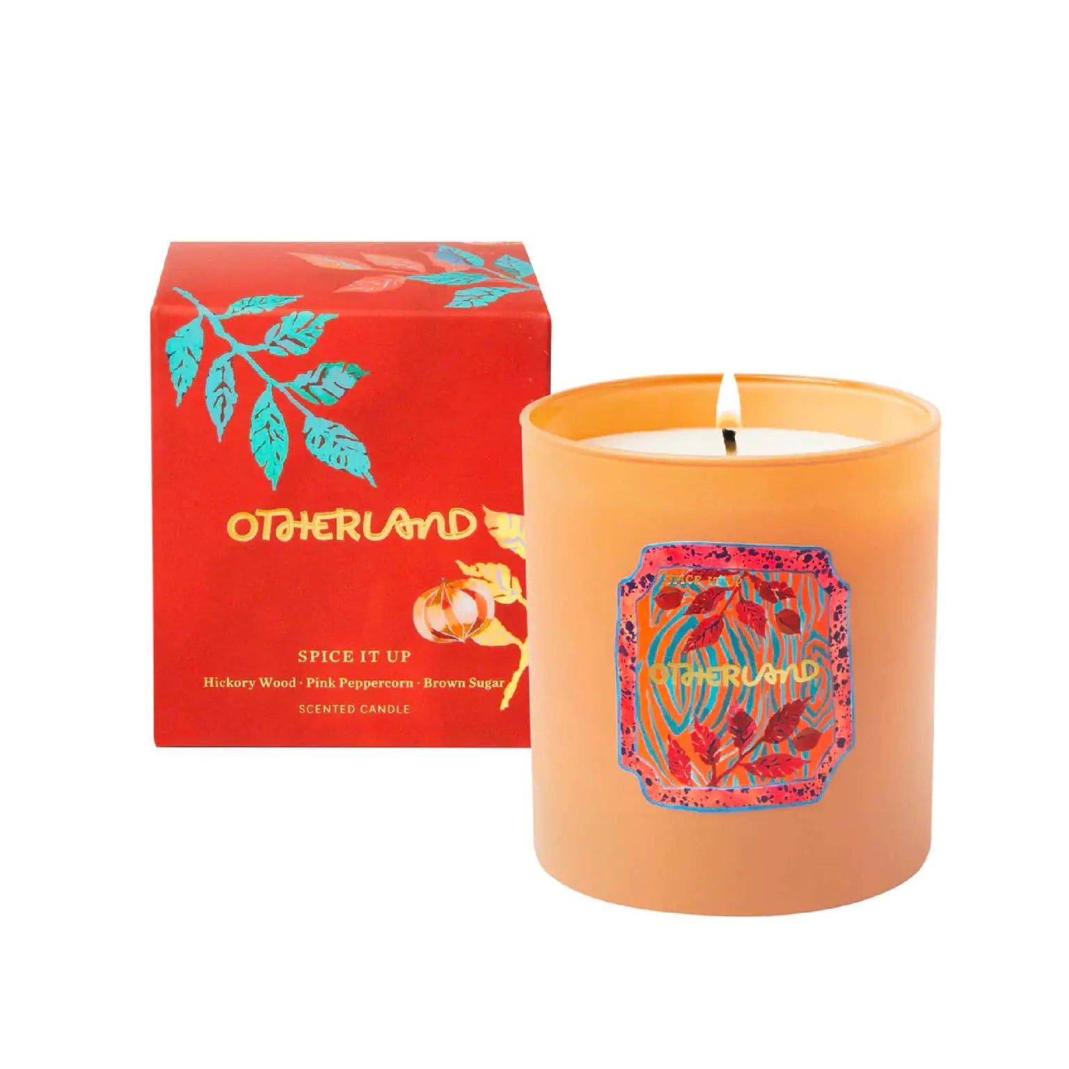 [SPICE IT UP SCENTED CANDLE — Hickory Wood Pink Peppercorn Brown Sugar LUXURY CANDLES — Meticulously crafted from wax to wick. Our highly fragranced fashionably complex candles fill a room without overpowering it. By developing our fragrances through countless iterations with master perfumers we were able to get every distinctive note from rugged to rosy just right. FORMULATION — Get lit responsibly with Otherland jar candles. From our coconut & soy candle wax blend to our cotton candle wick our vegan candles are formulated by experts to bring safe and effective ingredients into your home for up to 55 hours of burn time. QUALITY INGREDIENTS — Every one of our vegan candles is hand poured and formulated without parabens phthalates or synthetic dyes. These long-lasting candles are always cruelty free. HOMESTEAD COLLECTION — Warm mugs fill the air with sparkling spice toadstools speckle the teatime tablescape and cashmere spools beneath dancing harvest moons. Autumnland is more than a place or feeling—it’s a shimmer of the surreal and an aroma of the unexpected. Makes a perfect fall candle gift for any occasion. GLASS MADE TO LAST — Our glass candle jars are designed to be reusable home décor gifts. Create a positive impact and keep the good vibes going with a strike of a match. "ABOUT US — Established in New York and born from art buyer Abigail Cook Stones expeditions around the world Otherland candles bring the energy of art design and fragrance to every moment at home."]
