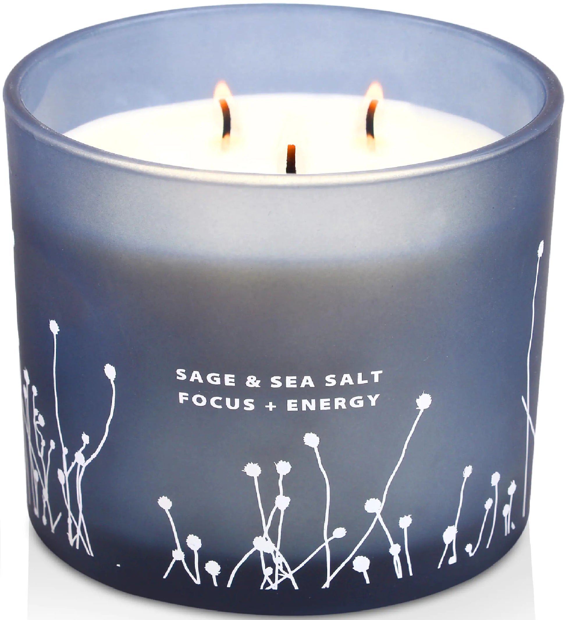 White Sage Sea Salt 3 Wick Candle Large 14.5 oz | Sage Candles for Cleansing House | Natural Soy Candle for Home Scented | Aromatherapy Energy Cleansing Sage Scented Candles for Women & Men
